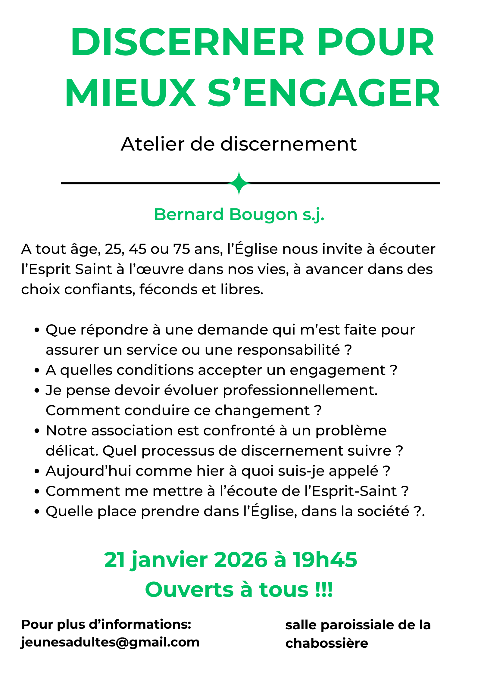 Samedi 31 janvier, à la Chabossière, conférence de Mgr Percerou sur la réconciliation à 16h30; suivi par la messe à la Chabossière à 18h30 et repas partagé. Pas de messe à Indre ce jour-là.