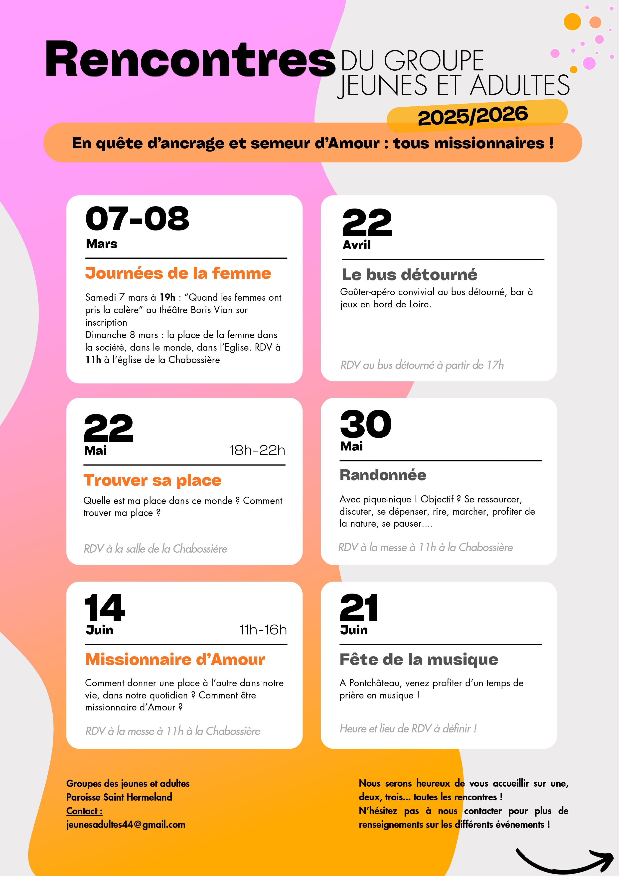Pour toutes informations sur les dates et inscriptions, s’adresser à la maison paroissiale ou au père Pierre Lemaitre.