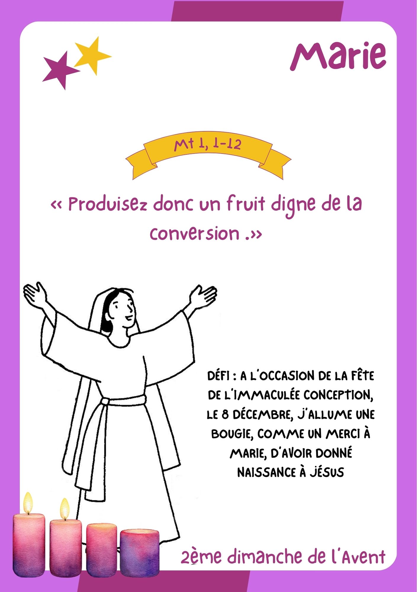 - Pendant le temps de l’avent, vous recevrez à la fin de chaque messe, un petit feuillet avec une phrase issue des textes bibliques, un extrait du témoignage entendu et deux questions pour nourrir votre réflexion durant la semaine (Cf. ci-dessous).