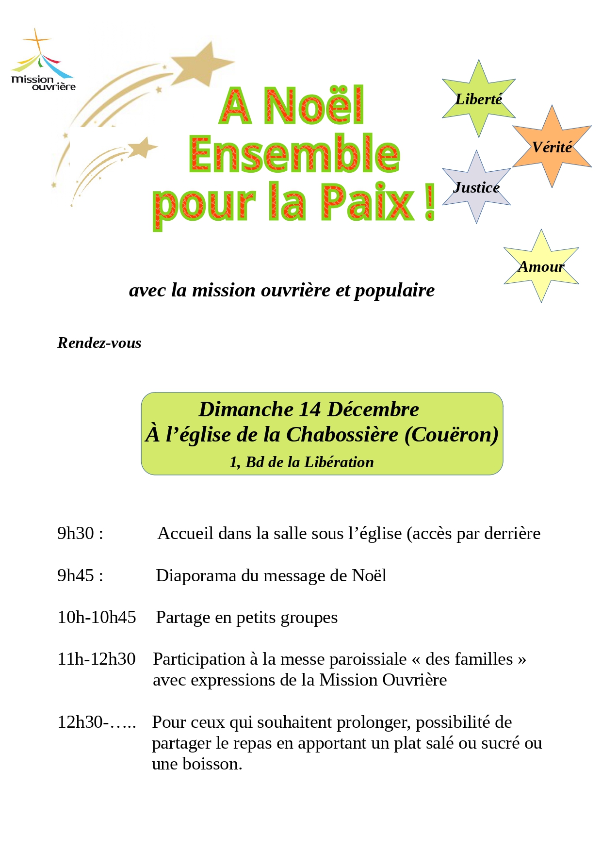 - Rencontre de la mission locale ouvrière : rendez-vous à 9h30 dans la crypte de l’église de la Chabossière
